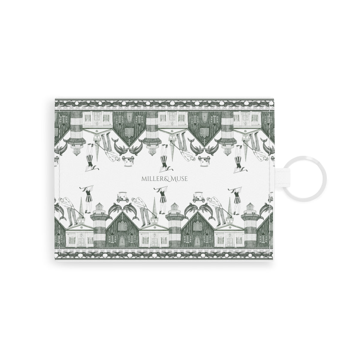 The Tidewater Card Holder features a hand-drawn damask inspired print featuring the iconic architecture, natural scenery, and renowned golfing culture of the Bluffton/Hilton Head Island, South Carolina area including sites and details such as: